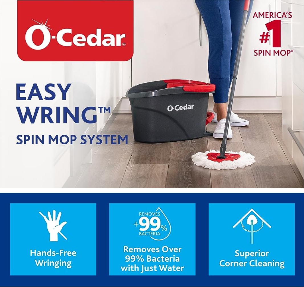 Home / Best Sellers in House Supplies / O-Cedar EasyWring Microfiber Spin Mop, Bucket Floor Cleaning System, Red, Gray