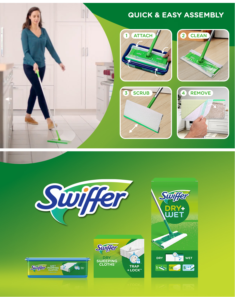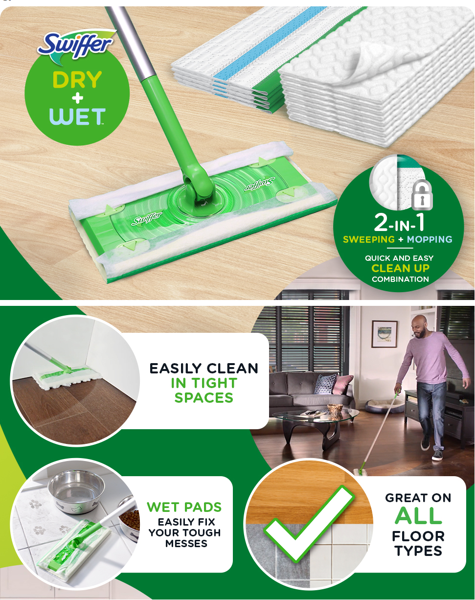 • Swiffer WetJet Spray Mop gives you the cleaning power of a mop with the convenience of a wipe; Easily get into tight spaces and clean your floors in minutes without the hassle of a mop and bucket