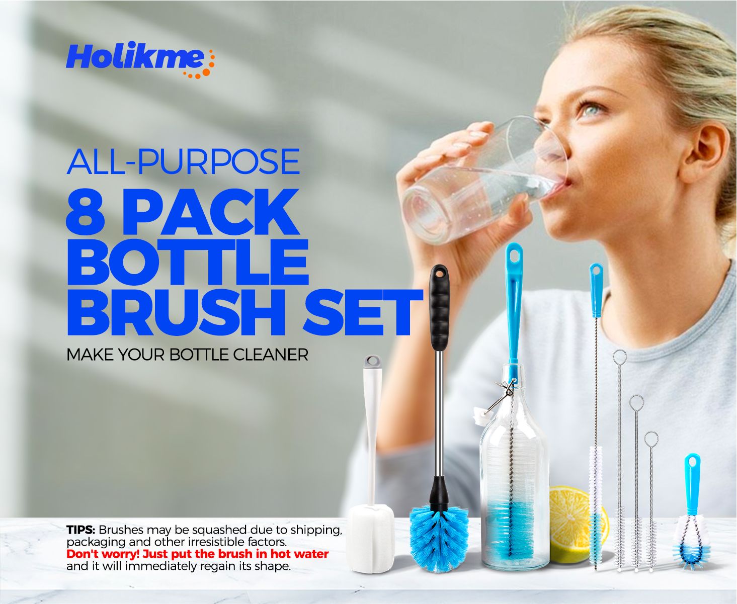Home / Brushes / Holikme 8 Pack Bottle Brush Cleaning Set, Long Handle Bottle Cleaner for Washing Narrow Neck Beer Bottles Wine Decanter Narrow Cup Pipes Sinks Cup Cover, White