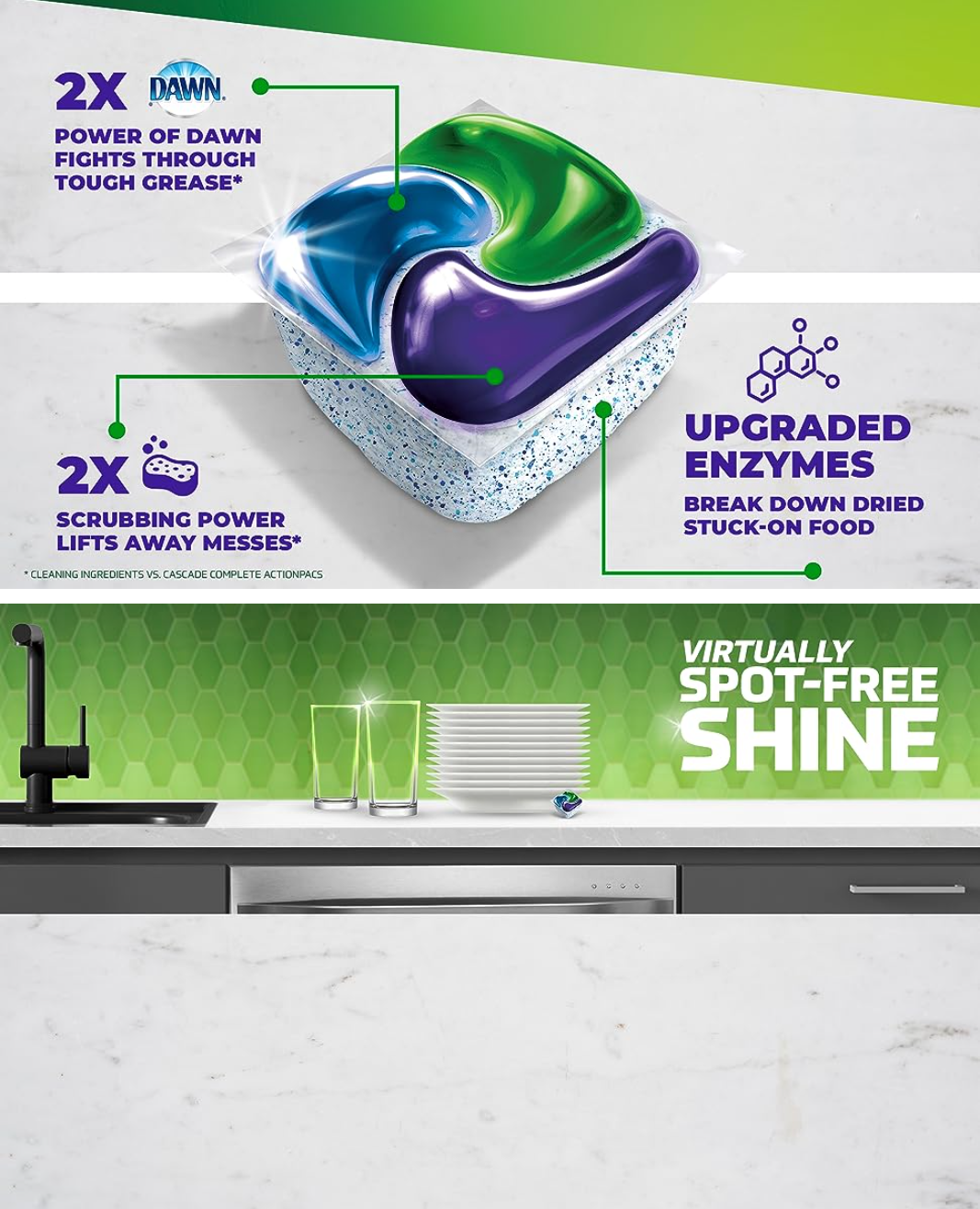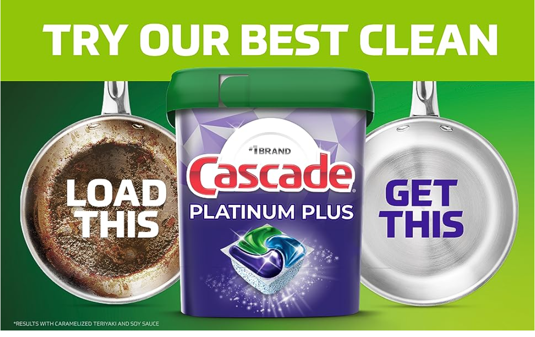 • Cascade Platinum Plus contains 2X* the Dawn grease fighting power and 2X* the scrubbing power to power through dried on food *Cleaning ingredients vs Cascade Complete ActionPacs