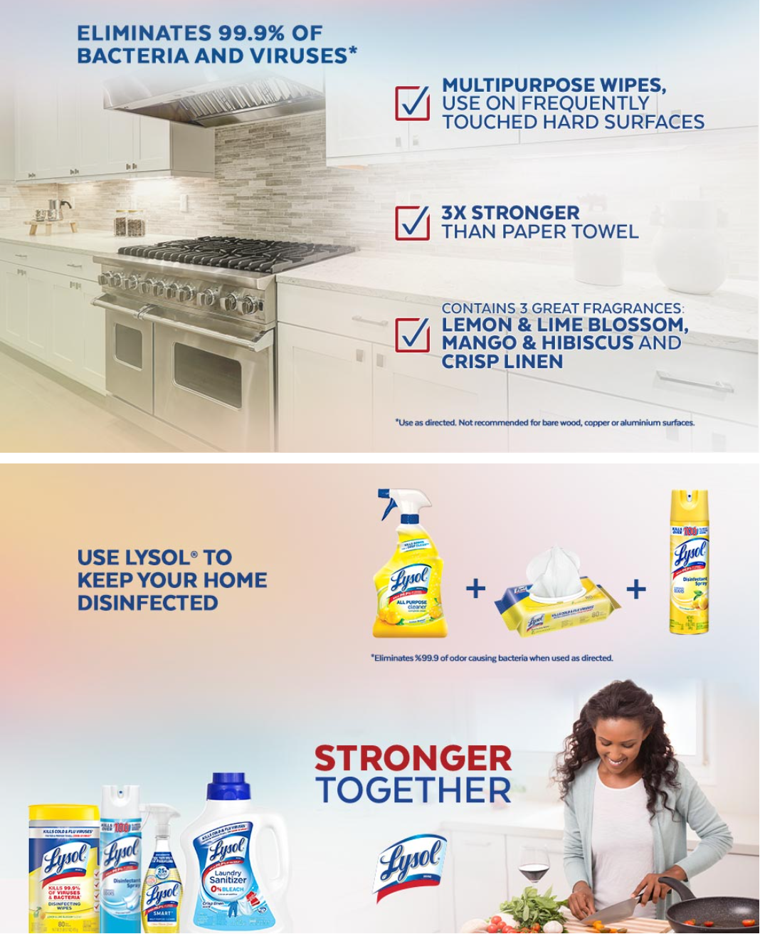 • LYSOL DISINFECTING WIPES ELIMINATE 99.9% OF VIRUSES AND BACTERIA: Tested and proven to disinfect and eliminate 99.9% of viruses and bacteria, including 8 cold and flu viruses. (Use as directed)​.​