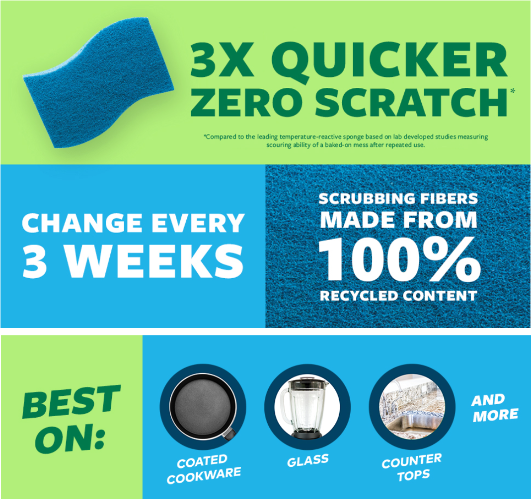 • 3X QUICKER, ZERO SCRATCH: Dish washing sponges are 3x quicker compared to the leading temperature-reactive sponge based on scouring ability after repeated use