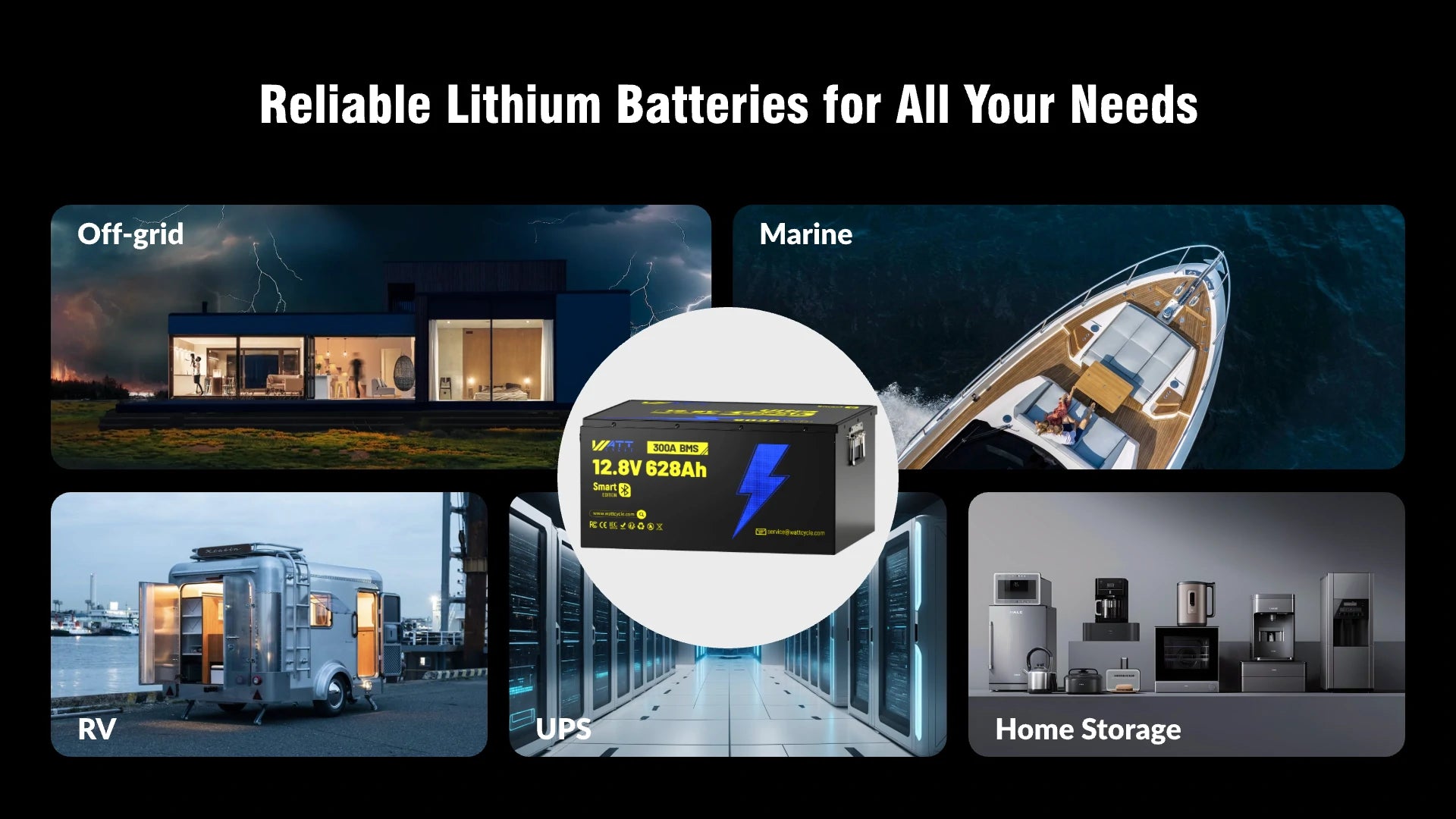 The WattCycle 12V 628Ah lithium battery excels in a wide range of settings—from reliable home energy storage and remote off‑grid microgrids to demanding marine environments and long‑haul recreational vehicles. In critical infrastructure such as UPS backup systems and telecommunications sites, its consistent output and intelligent protection features minimize downtime and maintenance. Whether you’re powering a vacation cabin, outfitting a commercial solar array, or ensuring uninterrupted operation aboard a vessel, the 12V 628Ah Ultra Lithium Battery delivers the robust performance and dependability that modern applications require.