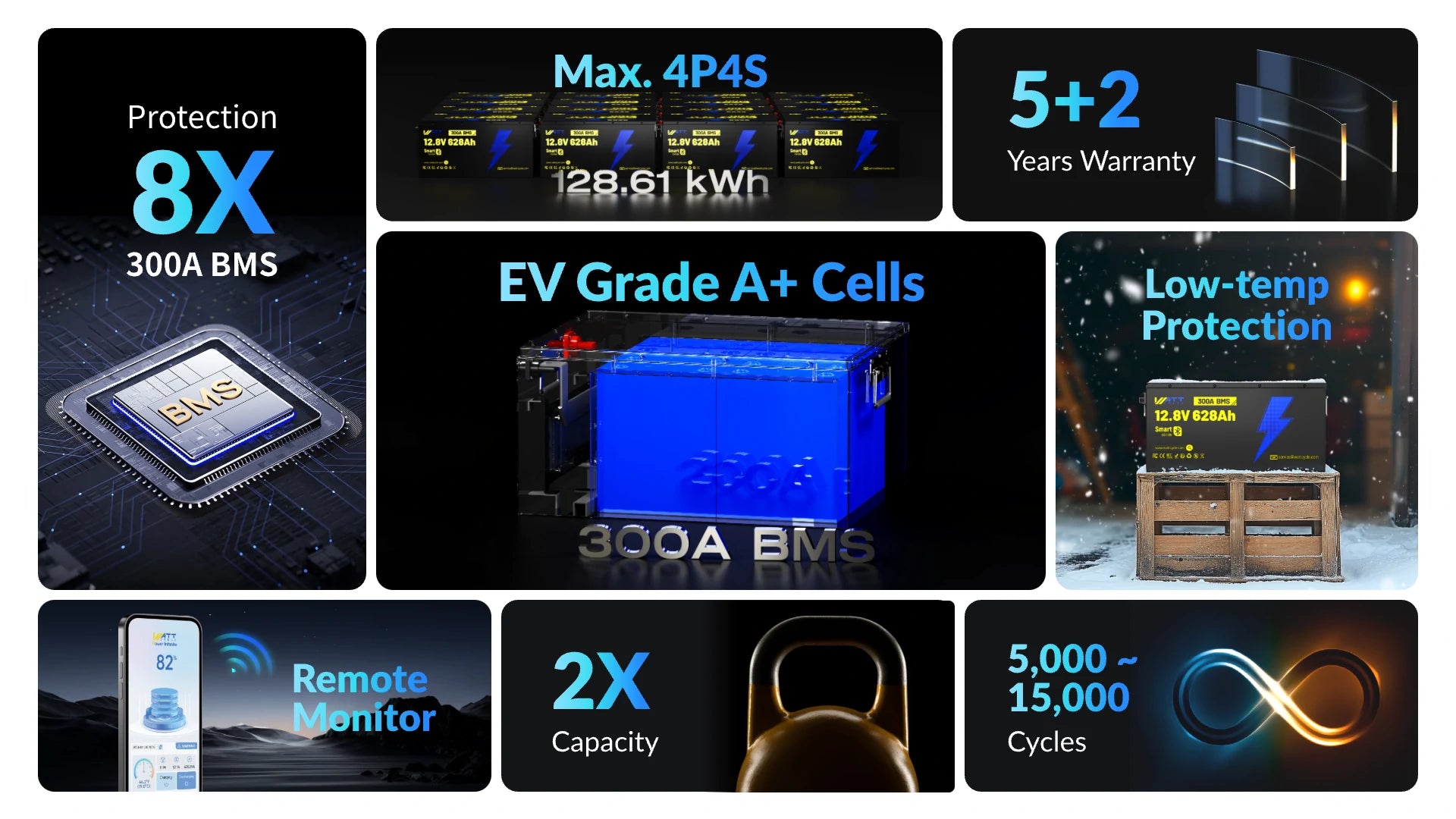• Massive 8.04kWh Storage: Perfect for energy-intensive applications (RVs, solar systems, marine).