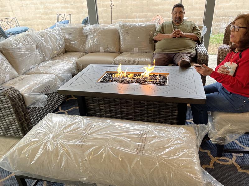 Additional Inclusions: The package also includes a 1-piece custom furniture cover made from recycled content, clips to attach the sectional seats, black fire glass beads, a matching burner lid, and the natural gas orifice.