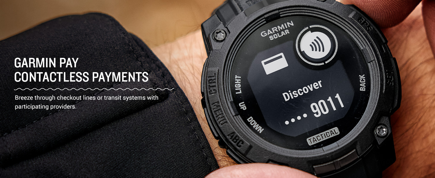 • Leave your cash and cards at home; Garmin Pay contactless payments (with supported bank) let you pay for purchases on the go and breeze through select transit systems