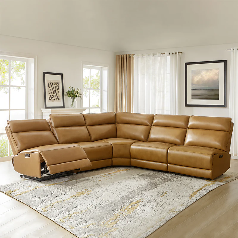 Raphael Genuine Leather Power Reclining Corner Sectional with USB and Type-C